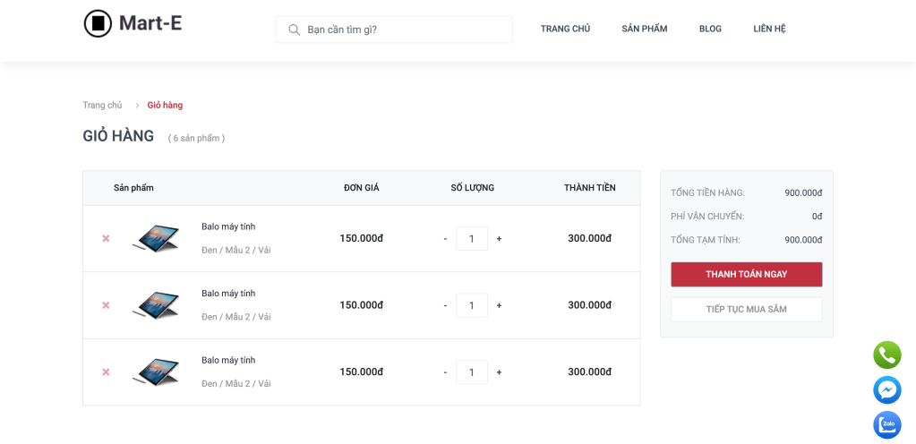 - Giỏ hàng => Checkout (Add to Cart => Checkout)